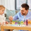 – This montessori toy is designed to develop fine motor skills, hand-eye coordination, and cognitive ability in children by having them thread a wooden “worm” through holes in various fruit-shaped wooden beads.