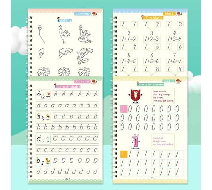 Unlock the world of imagination and learning with our captivating 4-book magic copywriting set, designed to make education an enchanting adventure for your little ones. Packed with four essential learning subjects – numbers, alphabet letters, drawing, and math – this set is a magical gateway to knowledge and creativity.