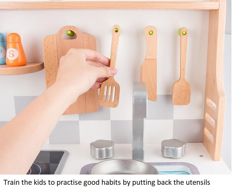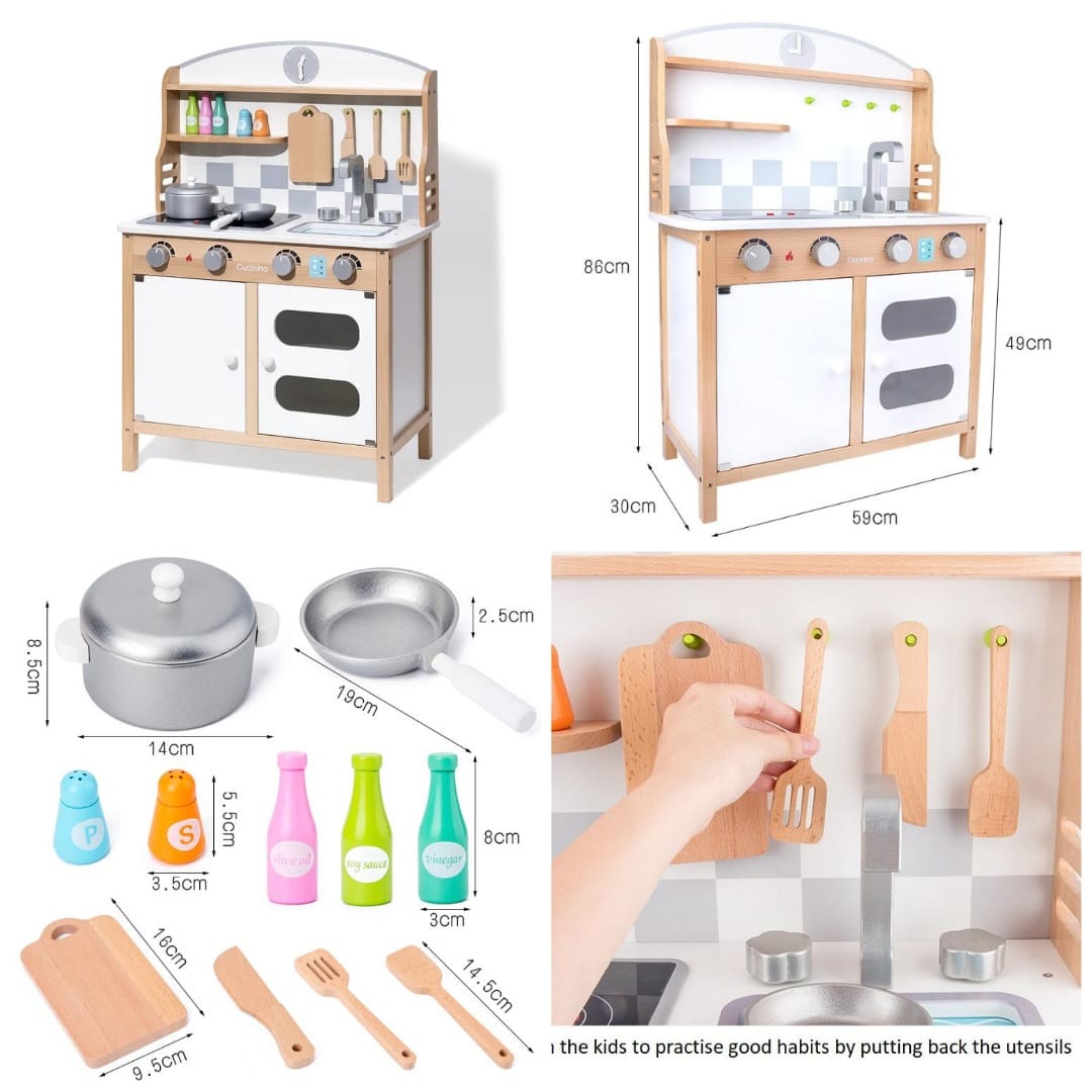 A great kid-sized kitchen playset for kids to cook up some fun and prepare delicious meals for family or friends. Learning how to use the kitchen tools while playing, kids creative thinking and imagination can be perfectly sparked.