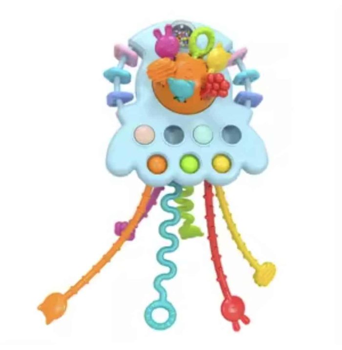 This multi-sensory silicone activity toy has a unique design, which can develop their motor skills and sensory perception by pulling the silicone ropes, up and down, pressing and pushing buttons. This toy will keep the baby occupied and entertained for hours while they play and explore the cause and effect.